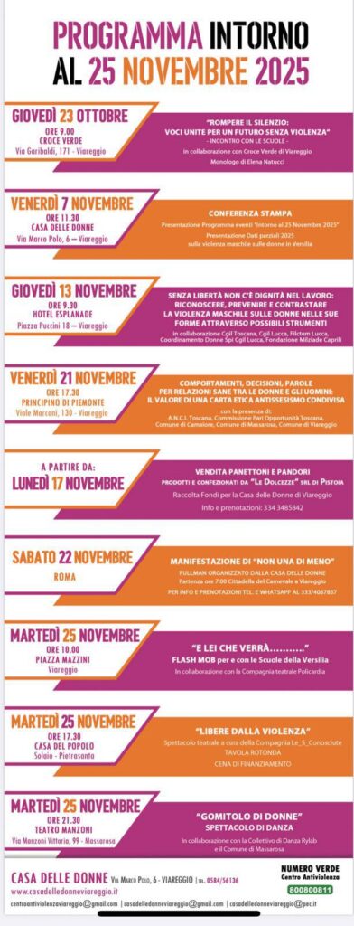 Programma intorno al 25 novembre 2025 Casa delle Donne Viareggio